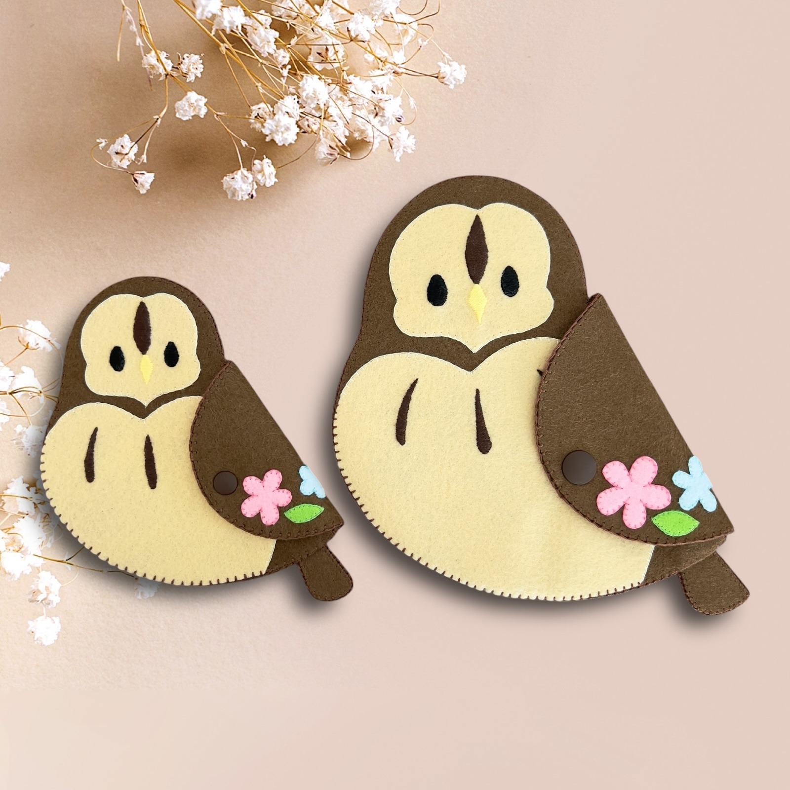 形にこだわって作ったポーチで、とても可愛く仕上がりました!商品説明欄にも記載しましたが、ポーチの蓋の部分が鳥の翼になるようにした所と翼にお花を付けたデザインは結構気に入っています。
