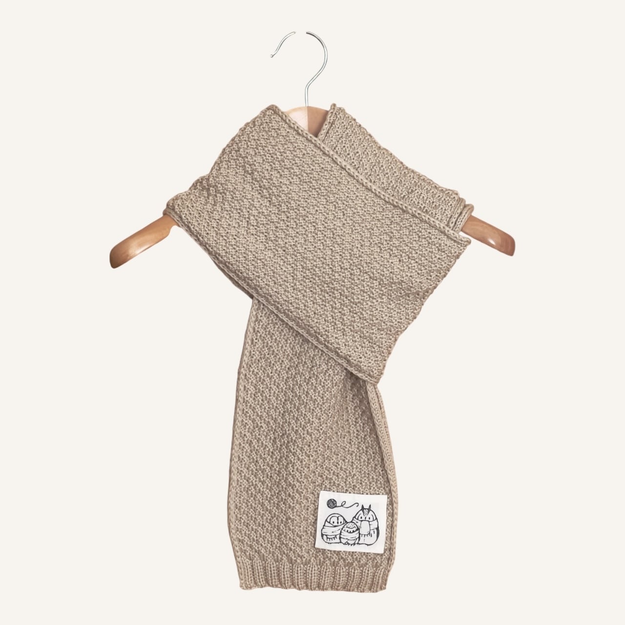 以前製作した鹿の子編みマフラーの色違いです。前回はグレーでしたが、今回はくすみベージュというカラーで作ってみました。写真1枚目の色が実物に近いです。