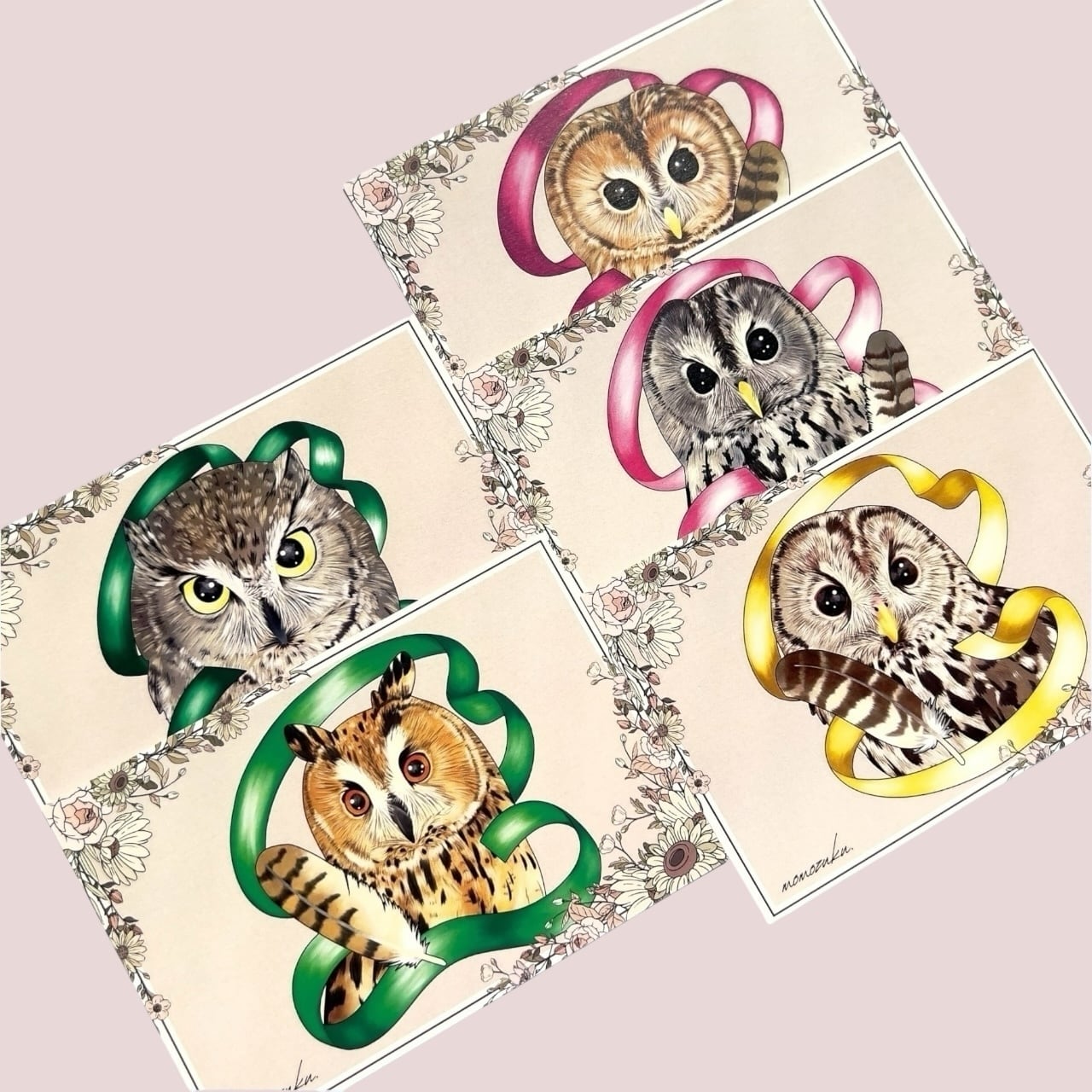 鳥とリボンの組み合わせで描いたデジタルイラストをポストカードにしました。