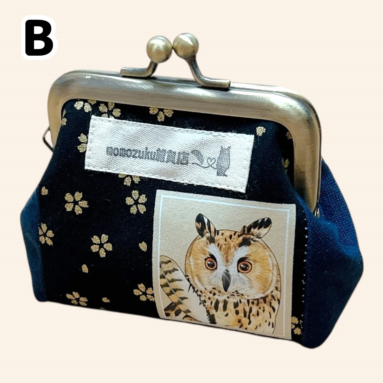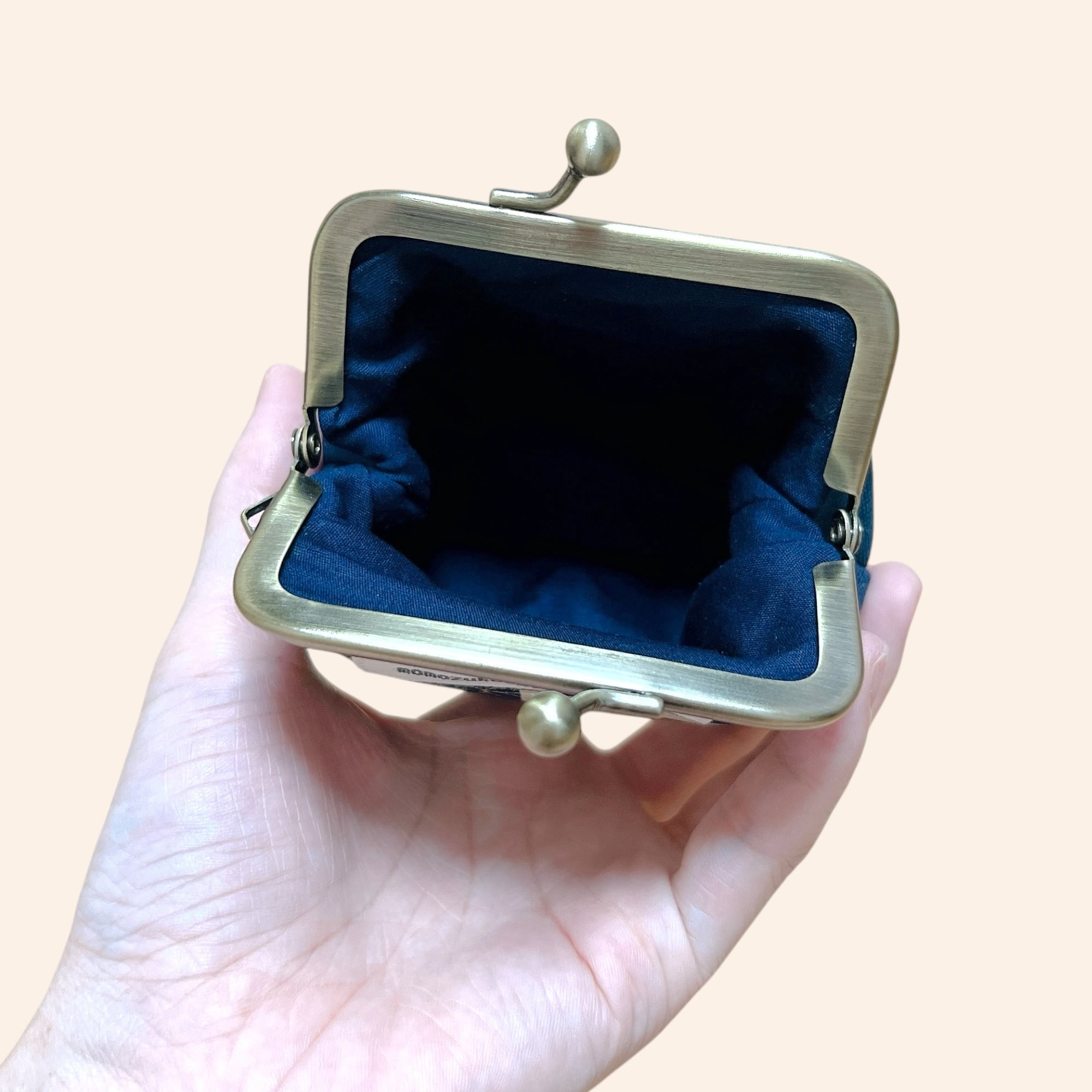 和柄の生地をメインに使用した、8.5cm金具の角型がま口です。手のひらサイズで、使い勝手の良いサイズになっています。