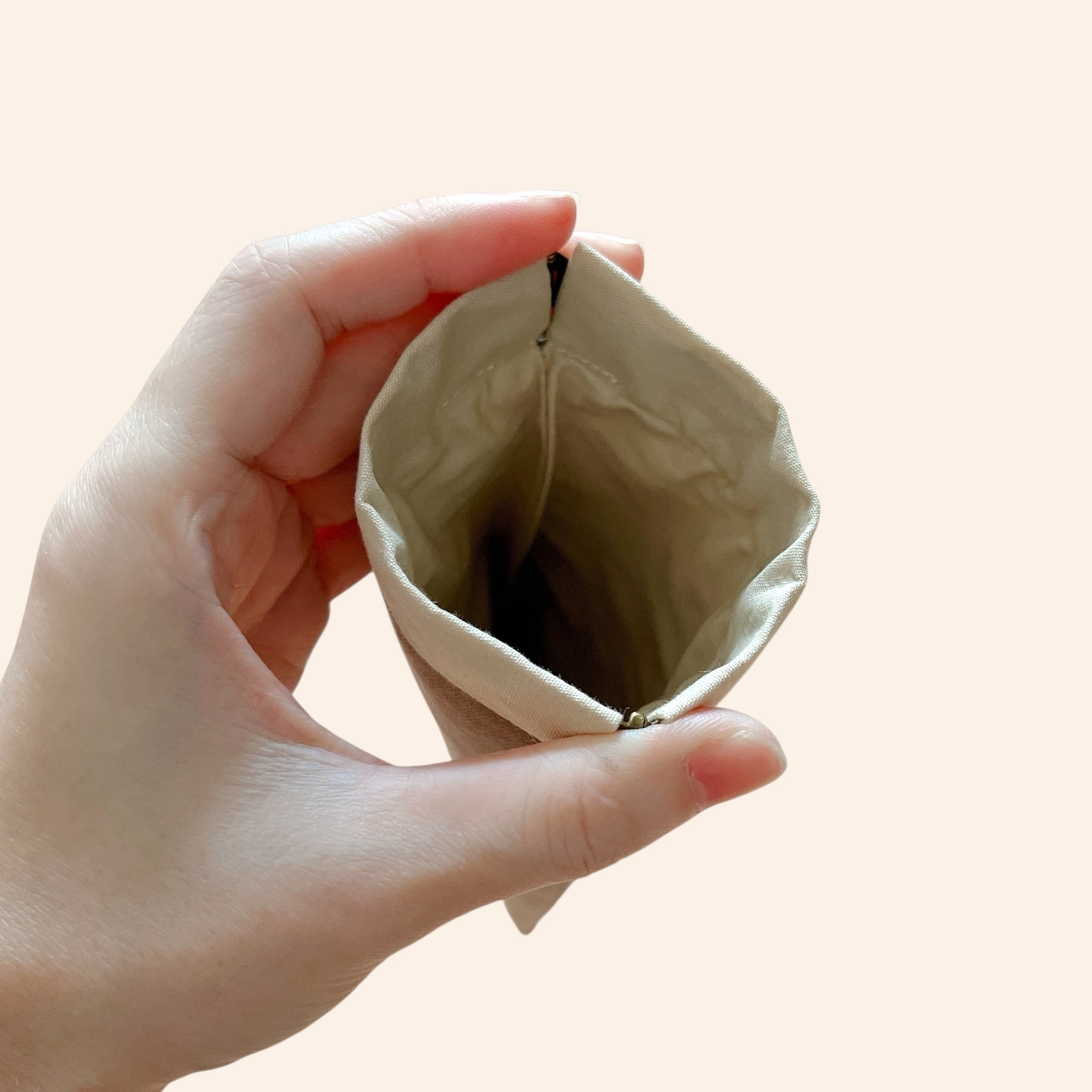 こちらのポーチは、手作りによる温かみを感じられるアイテムです。丁寧に仕上げていますので、愛着を持って長くご使用いただけます。
