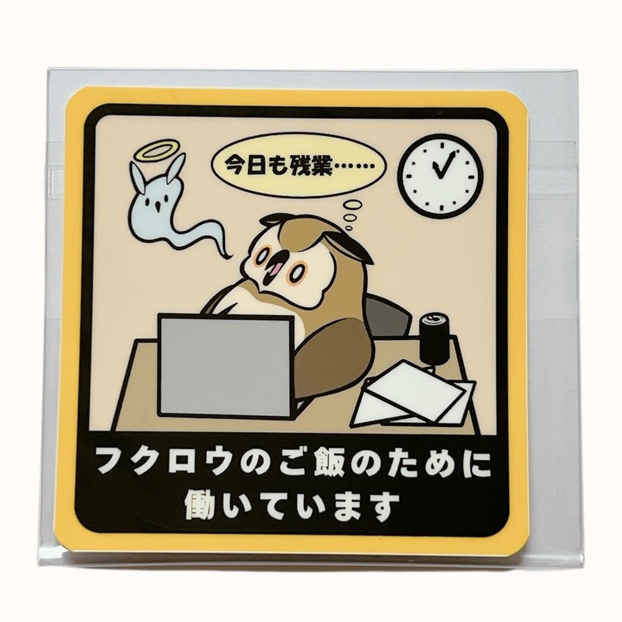 フクロウのために頑張って働いている事を表示するステッカーです。