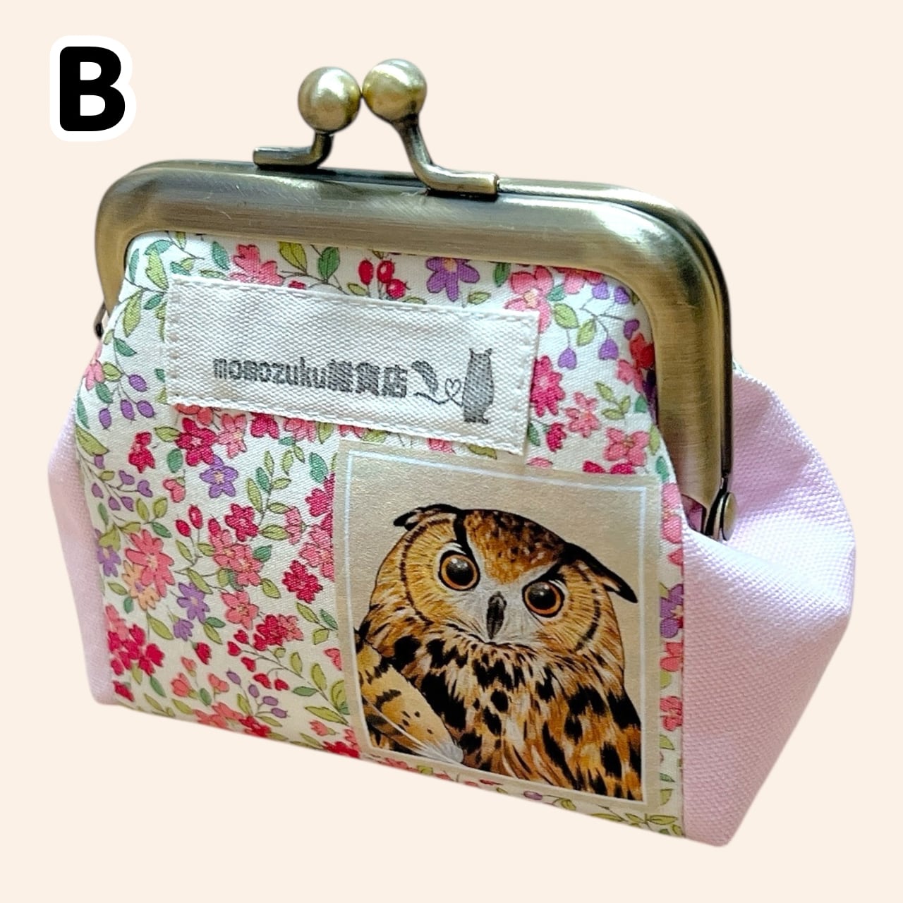 花柄の生地をメインに使用した、8.5cm金具の角型がま口です。手のひらサイズで、使い勝手の良いサイズになっています。