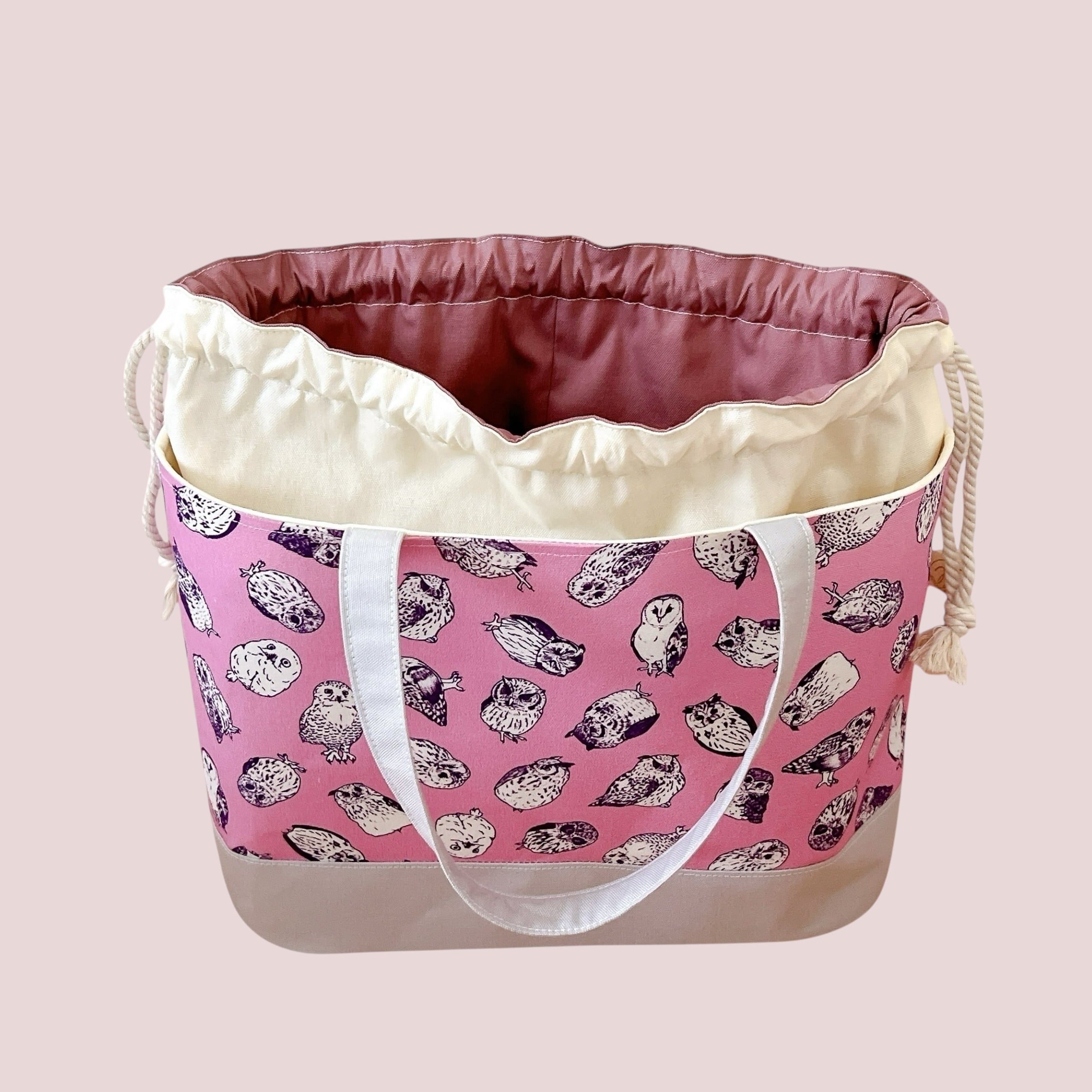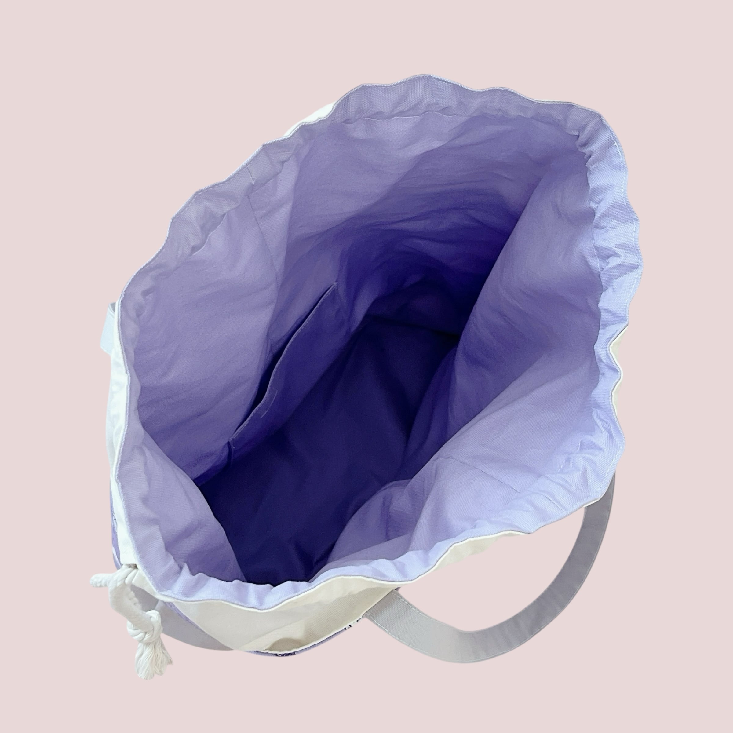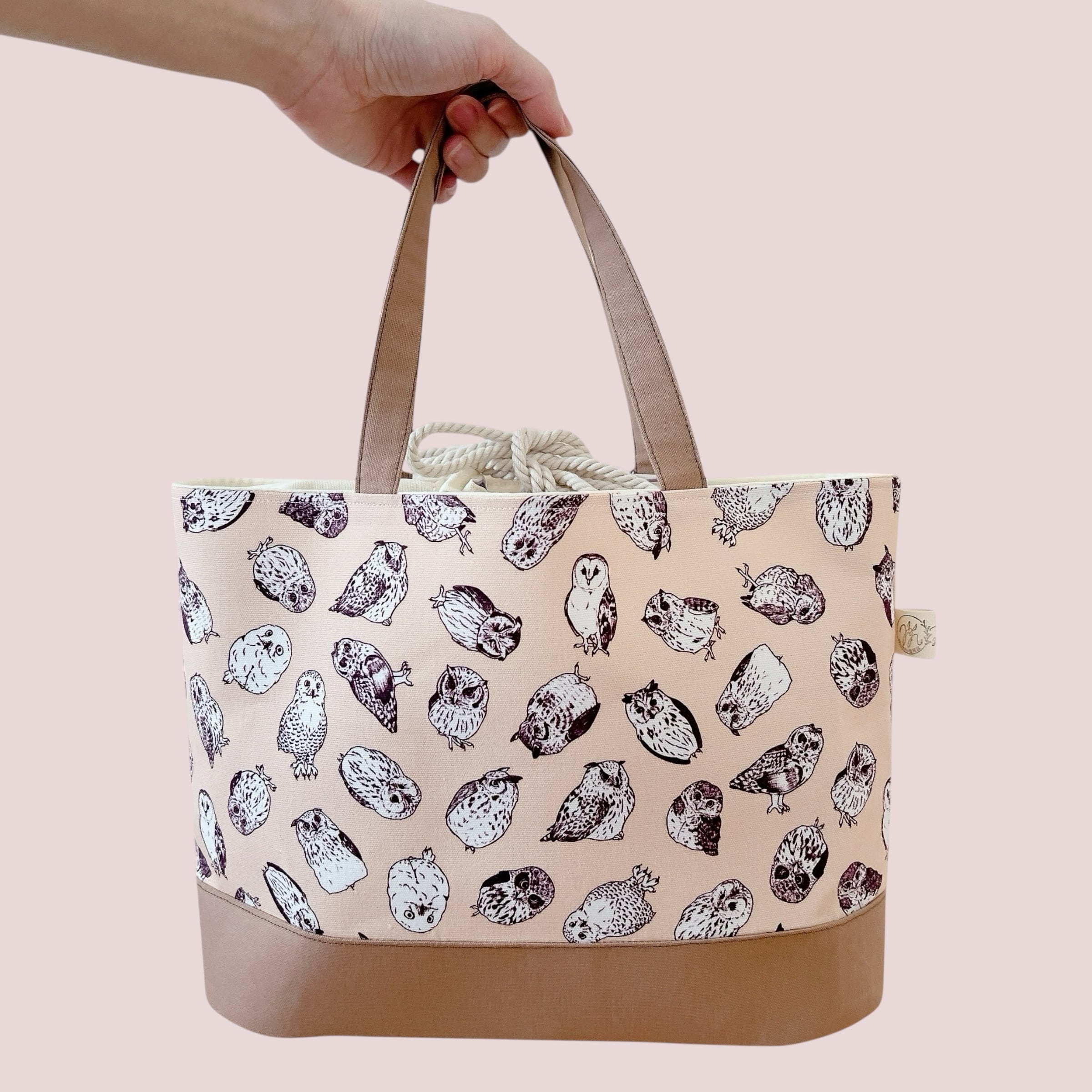 momozukuオリジナルデザインの生地を使用して作った、巾着付きトートバッグです。