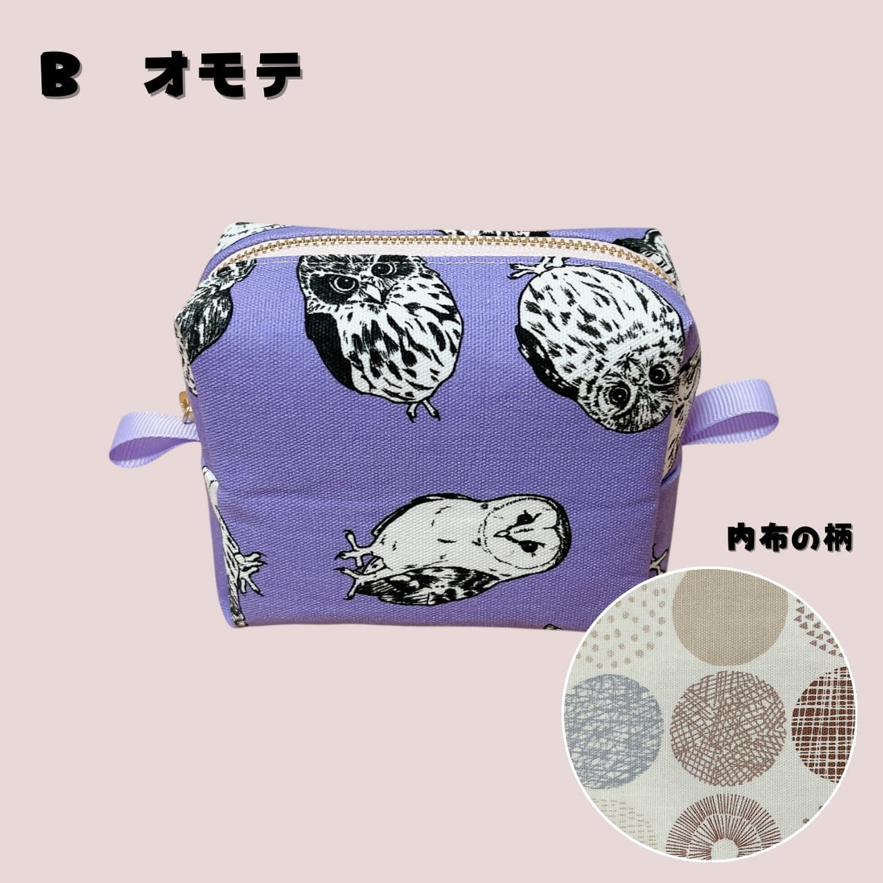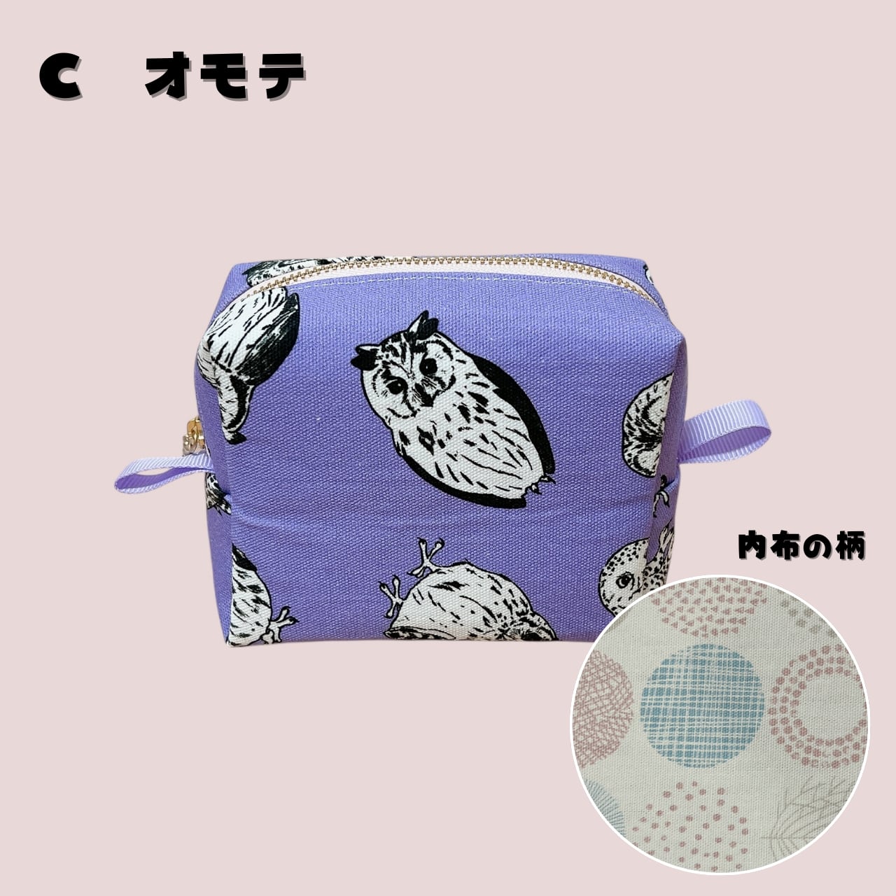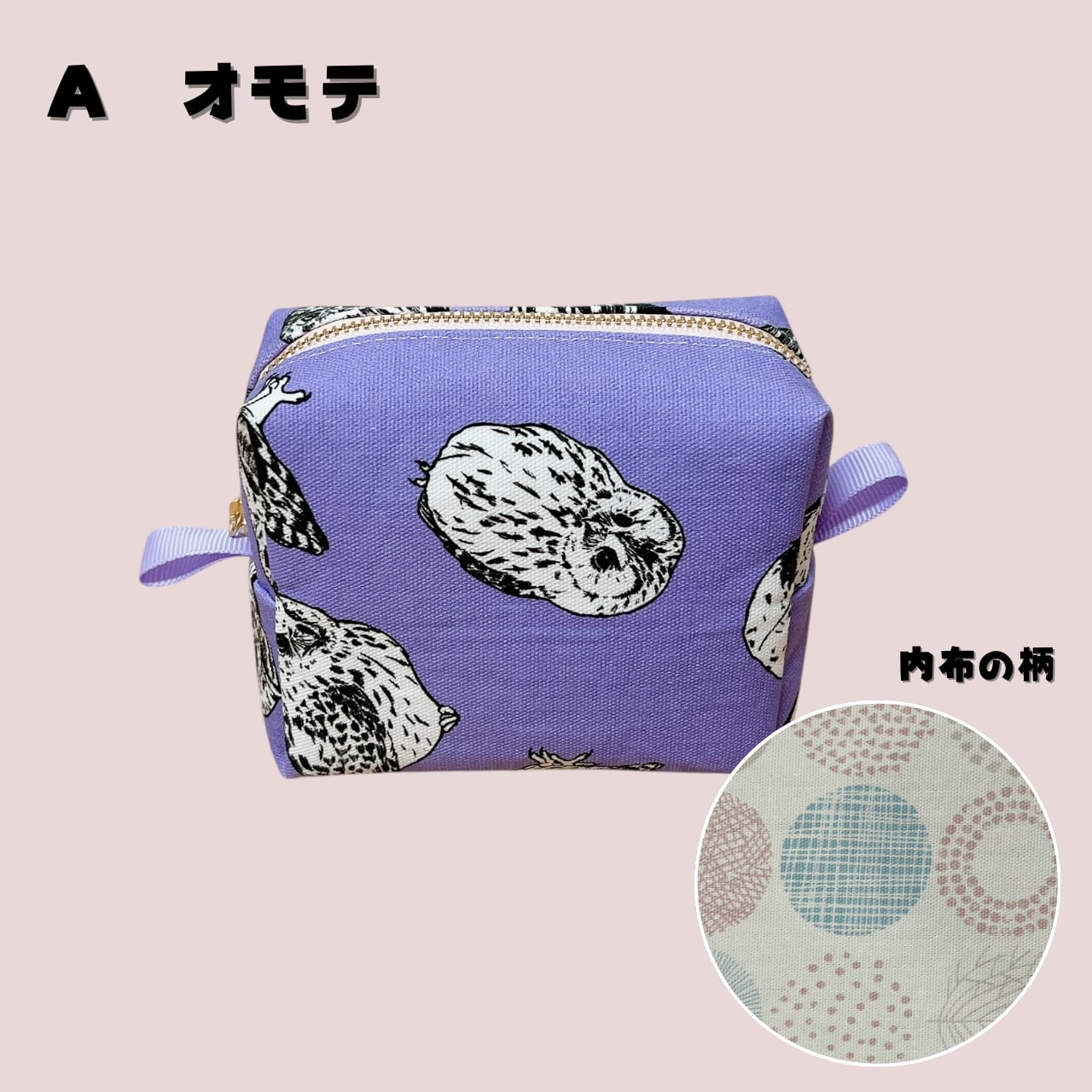 momozukuオリジナルデザインの生地を使用して作った、ボックスポーチです。