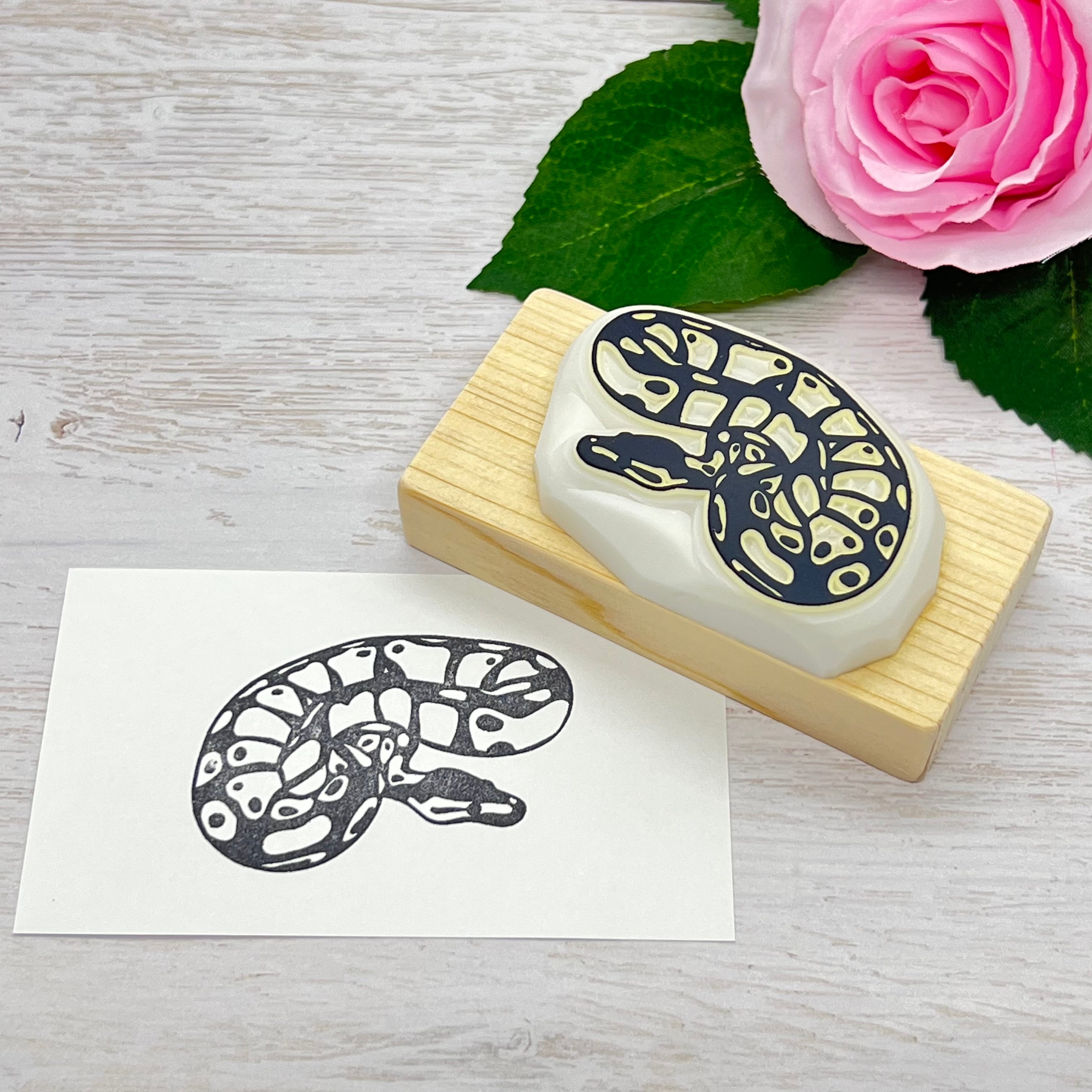 写真を複写して製作した、ボールパイソンの消しゴムはんこです。