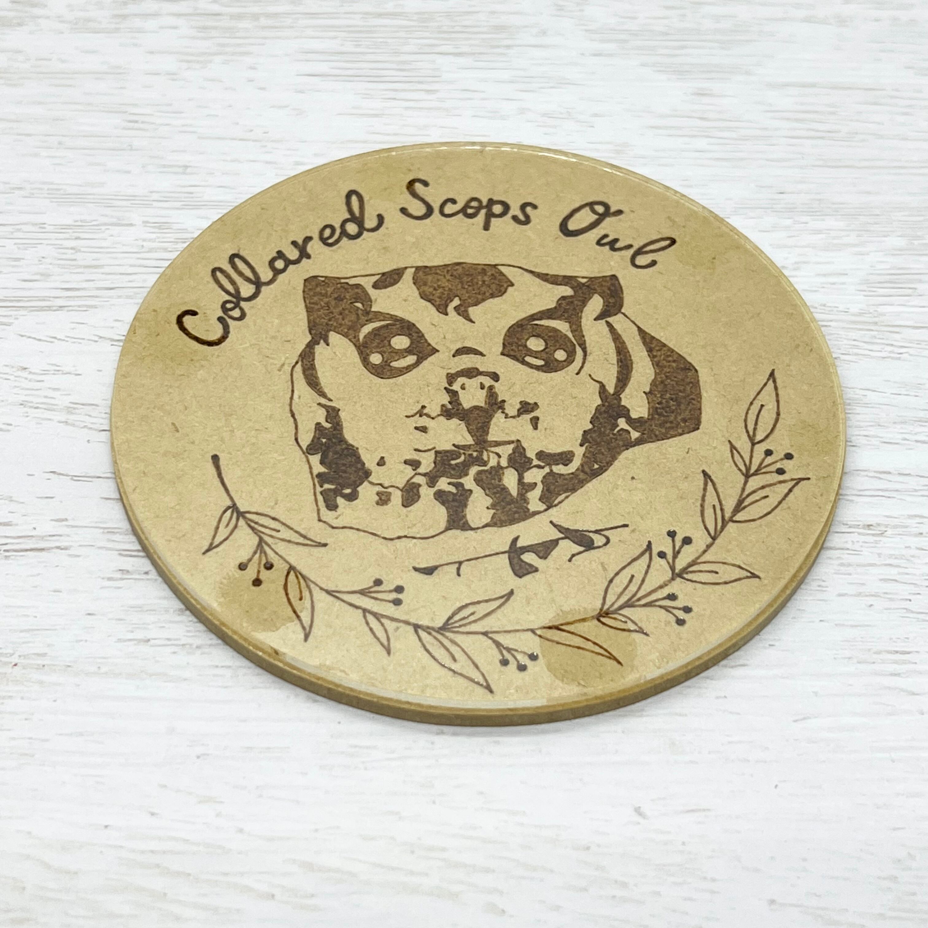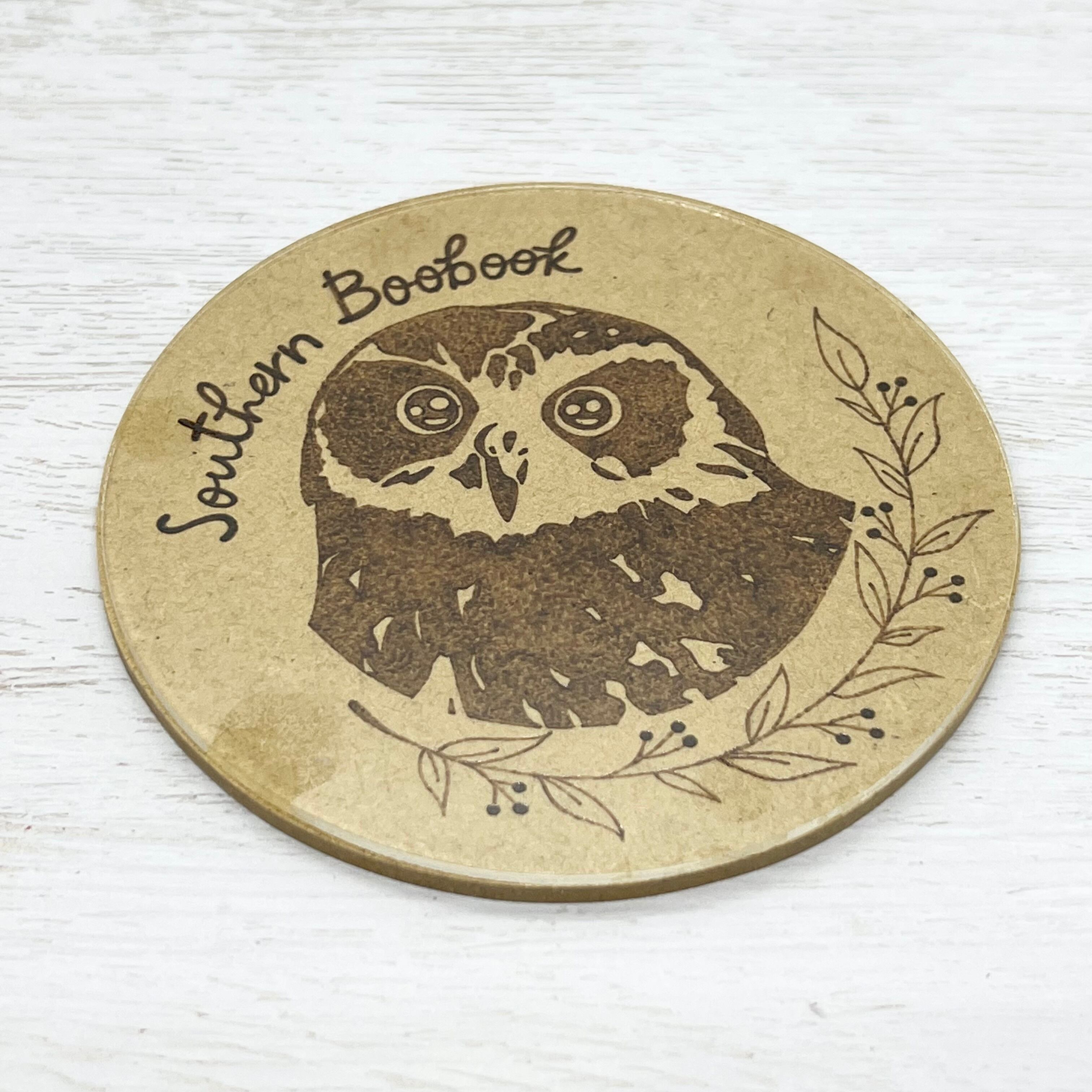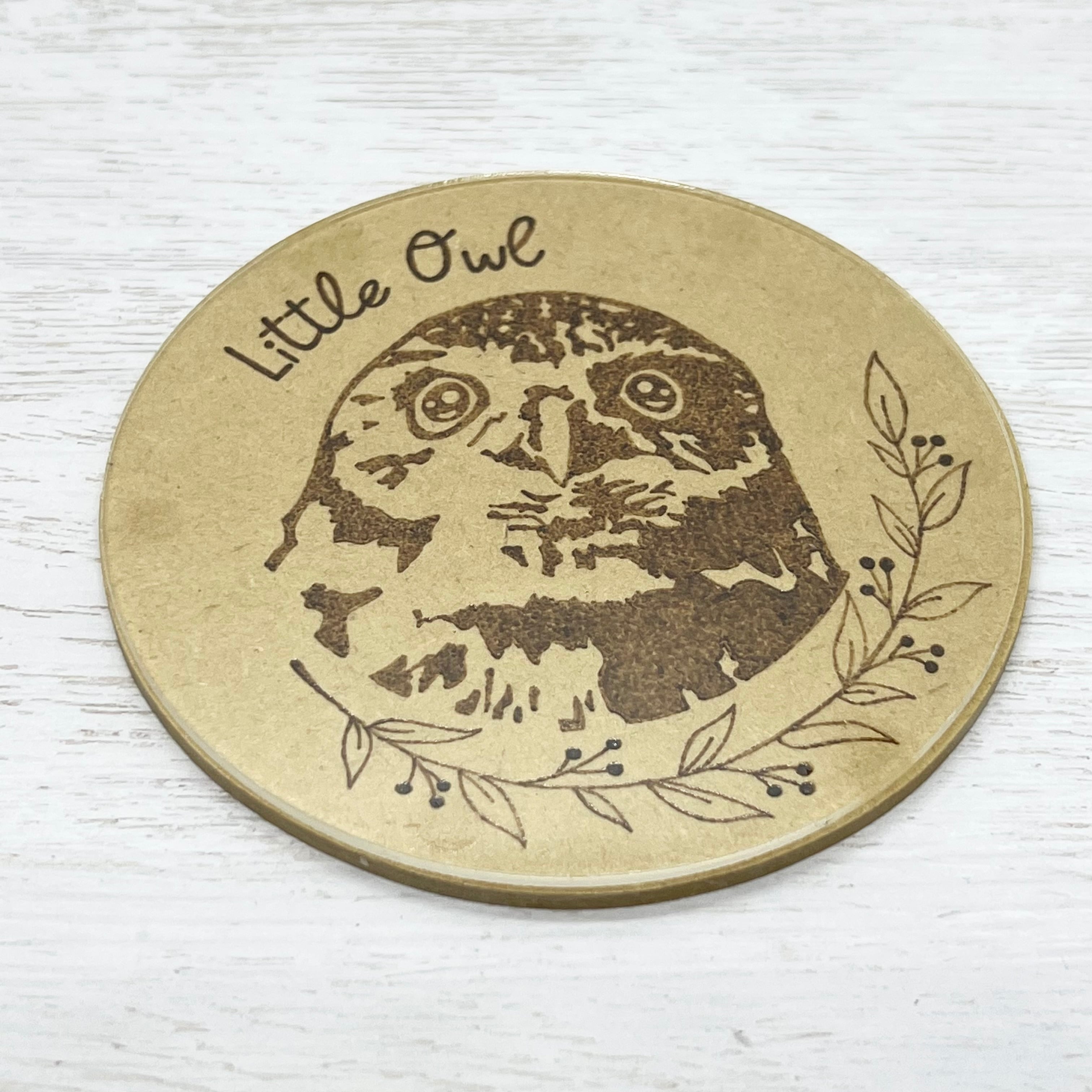 木製のプレート部分にはウッドバーニングで絵を描いてあり、表面にはアクリル板を張り付けてあります。また、木製部分は全面防水加工を施してあるため、吸水するタイプではなく、撥水するタイプのコースターとなっております。