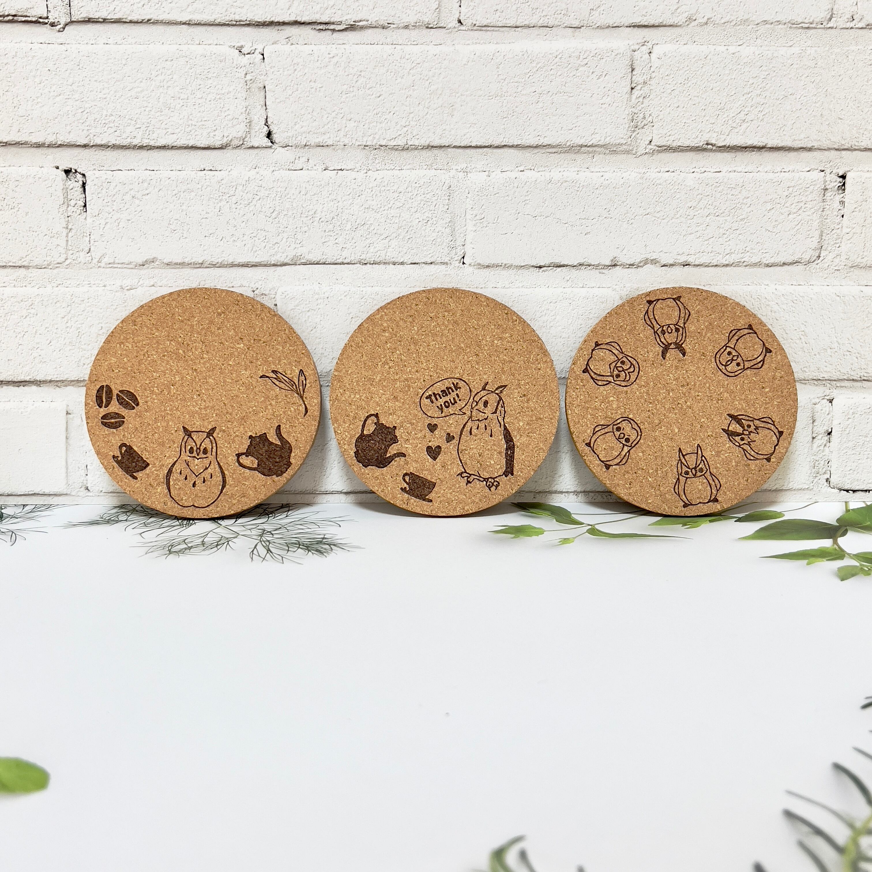 ウッドコースターは耐水(防水)仕様ですが、こちらはコルクでできているため、吸水性があります。素材の違いによる良さを楽しんでもらえると嬉しいです。