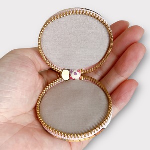 コロンとした形が可愛い、手のひらに収まるサイズのマカロン風のポーチです。